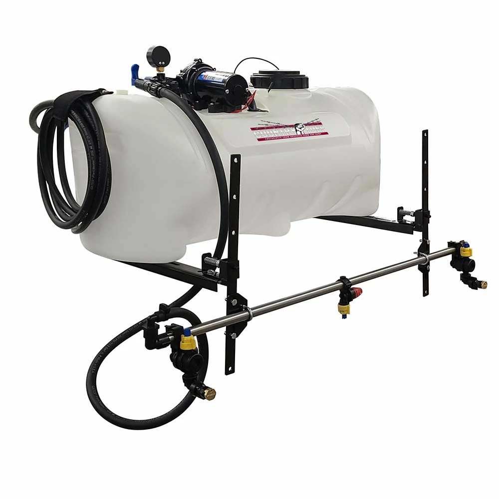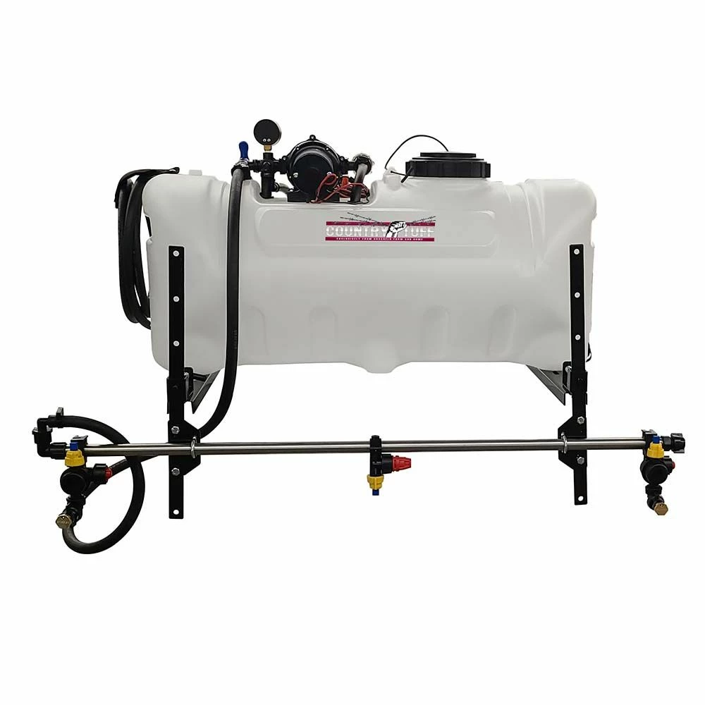 Cover more ground with this 25 Gallon Country Tuff® Premium ATV Broadcast and Spot Sprayer. Featuring a top-of-the-line pumping system that includes a robust Everflo 3.0GPM 12V on-demand diaphragm pump, pressure gauge, adjustable pressure regulator, and a shut-off valve that controls water flow to spray boom. As terrain and spraying applications change, conveniently adjust spray boom height with the all-steel boom bracket uprights. Easily move the sprayer on/off a vehicle with quick grip handles built into the UV resistant tank. Includes 15 feet of hose to spray gun that gives more flexibility for those hard-to-reach areas. After application use, drain remaining water and chemical with the accessible molded in drain port. Comes standard with 12v wire harness that features on/off switch and alligator clamp connection. Comes standard with two ratchet straps to keep from falling off while driving. Approved for use with Round-Up® and other agricultural brand herbicides and insecticides. Backed by a two-year warranty on pump & components. Can be used with ATVs (4-Wheeler), UTVs (Side-by-Side) and other means of transportation with some modifications. Spot Spraying: When it comes time to spot spray, un-holster your deluxe spray gun and reach up to 25 feet vertically and 30 feet horizontally from the comfort of your seat. As applications change, quickly adjust the heavy-duty brass nozzle from a steady stream to a wide mist. Deluxe spray gun is field repairable and features a trigger lock to reduce hand fatigue on longer jobs. Precision & Broadcast Spraying: With just a few twists, control over 17 combinations of spray patterns that allows for up to 30 feet of spray coverage. Features a positive shut-off between spray positions and drip-free check valves. Clean up is a breeze with the quick flush port. With a small wingspan, easily prevent damage from oncoming obstacles such as trees. Comes standard with two boomless broadcast nozzles (broadcast setup) and three air induction nozzles (precisions setup). Coverage: This ATV sprayer is designed to handle up to 2 acres* of coverage in one sitting. Making it perfect for small to medium lawns and food plots with an ATV (4-wheeler). *Acreage coverage is based on running spraying application at 30 PSI while maintaining speed at 6 MPH. #html-body [data-pb-style="62160449A9399"]{justify-content: flex-start; display: flex; flex-direction: column; background-position: left top; background-size: cover; background-repeat: no-repeat; background-attachment: scroll; border-style: none; border-width: 1px; border-radius: 0px; margin: 0px 0px 10px; padding: 10px;}#html-body [data-pb-style="62160449A93B9"]{border-style: none; border-width: 1px; border-radius: 0px; margin: 0px; padding: 0px;}