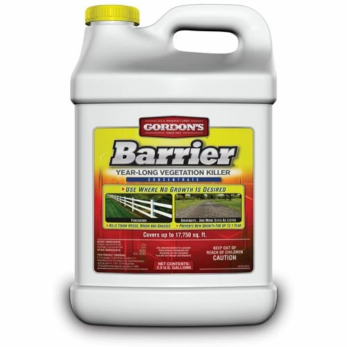Gordon’s® Barrier® Year-Long Vegetation Killer Concentrate uses dual-action technology that kills and prevents weeds, grass and brush for up to 12 months. It goes to the roots to stop growth fast. Apply where no vegetation is desired in areas such as fencerows, driveways, around residential buildings, propane tanks, around residential storage areas, parking areas, patios, pathways, and more.