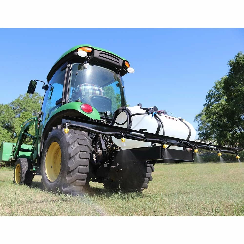 Get your tractor revved up for this one of a kind, heavy-duty Country Tuff 40 Gallon Deluxe 3-Point sprayer. Featuring a top-of-the-line pumping system that includes a robust Everflo 2.2GPM 12V on-demand diaphragm pump, pressure gauge, adjustable pressure regulator, and a shut-off valve that controls water flow to spray boom. In minutes, easily mount the heavy-duty all-steel frame to any category one tractor. Keep debris and chemical clumps from entering your pump with the easy to maintain quick attach inline strainer. Keep your 15 feet of hose from dragging and being damaged with the included hook and loop hose strap. Other features include thick tank walls for increased durability and a quick power connection with the included 12V wire harness. Approved for use with Round-Up® and other agricultural brand herbicides and insecticides. Backed by a two-year warranty on pump & components. Can be used with UTVs (Side-by-Side) after some minor modifications. Spot Spraying: When it comes time to spot spray, un-holster your deluxe spray gun and reach up to 25 feet vertically and 30 feet horizontally from the comfort of your seat. As applications change, quickly adjust the heavy-duty brass nozzle from a steady stream to a wide mist. Deluxe spray gun is field repairable and features a trigger lock to reduce hand fatigue on longer jobs. Broadcast Spraying: This 3-point sprayer features the premium, heavy duty SSBK-620 broadcast spray boom that has a 10-foot spray swath. Featuring quick attach, no-drip spray nozzles that prevent excessive chemical dripping after spraying. With fold-able wings, easily prevent damage from oncoming obstacles such as trees or fold wings in for more compact storage. Comes standard with six flat fan nozzles. Coverage: This 3-Point sprayer is designed to handle up to 4 acres* of coverage in one sitting, making it ideal for large spray applications with a category one tractor. *Acreage coverage is based on running spraying application at 30 PSI while maintaining speed at 5 MPH. #html-body [data-pb-style="621604460A7F7"]{justify-content: flex-start; display: flex; flex-direction: column; background-position: left top; background-size: cover; background-repeat: no-repeat; background-attachment: scroll; border-style: none; border-width: 1px; border-radius: 0px; margin: 0px 0px 10px; padding: 10px;}#html-body [data-pb-style="621604460A817"]{border-style: none; border-width: 1px; border-radius: 0px; margin: 0px; padding: 0px;}